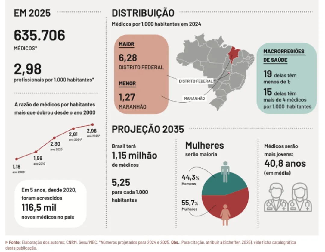 Em 2025, o Brasil chega à marca de 635 MIL médicos. Em 2035, seremos mais de 1,15 MILHÃO. A concorrência vai se tornar brutal.