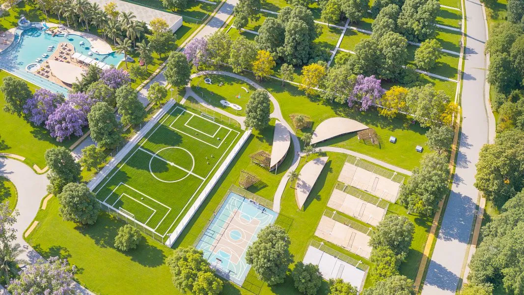 Campo de Futebol Society, 2 Quadras de Beach Tennis, Quadra Poliesportiva, Quadra de Tênis e Quadra de Vôlei de Areia.